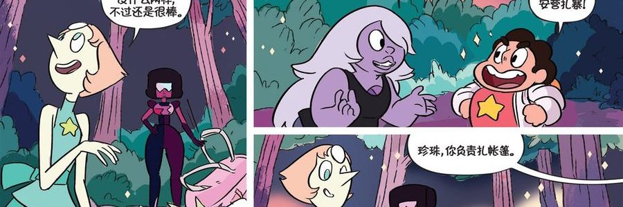 史蒂文和珍珠、石榴以及紫晶来到野外露营。夜深时,众人讲的恐怖故事开始成真。漫画后附《花园墙外 01》短篇。