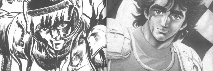 钢铁骑士漫画 ,赛车手-黑须元凭着强烈的斗志与高明的技能,之後终於打败财团培育的敌手…肢体动作与赛车技能